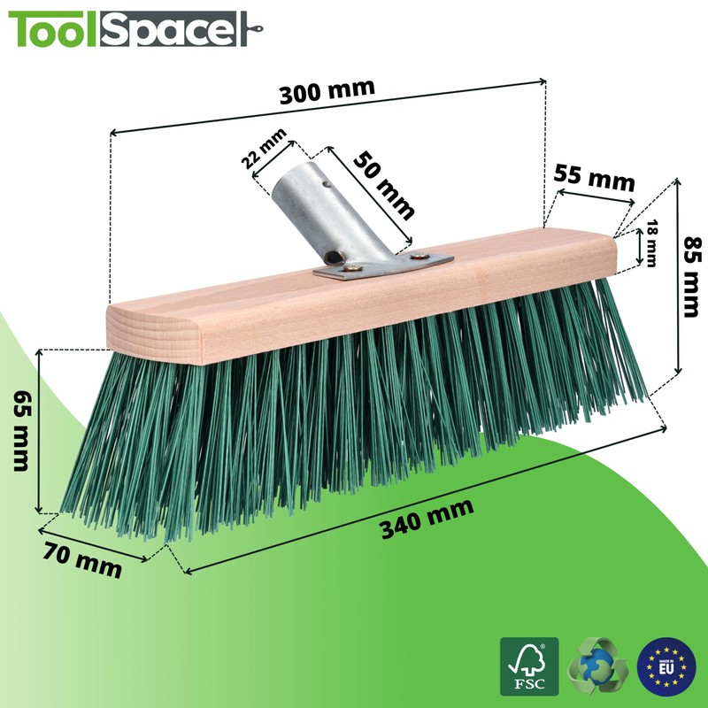 ToolSpace Street Broom 30 cm – 1 Piece – Wooden Sweeping Broom for the Patio, Garage, Paving, Paths, PET Bristles Industrial Broom with Handle Hole Scrubber without Handle Hall Broom Garden Broom