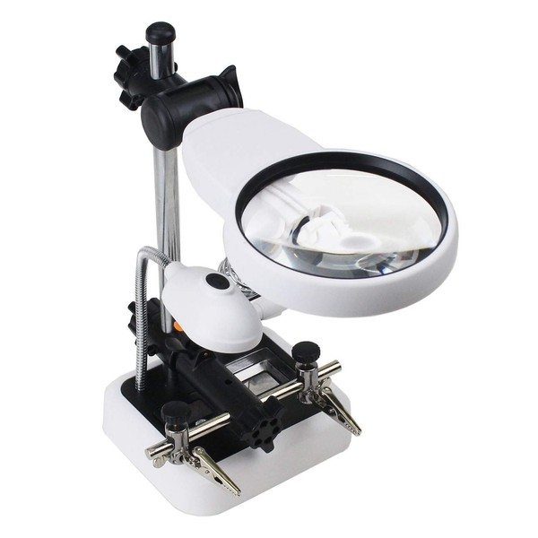 ToolUSA LED Clamp Magnifier | 3 Lenses (3.5X, 5X, 8X) | 6 LED Lights | Dual Power (Battery/USB) | 2 Clamps & Soldering Holder