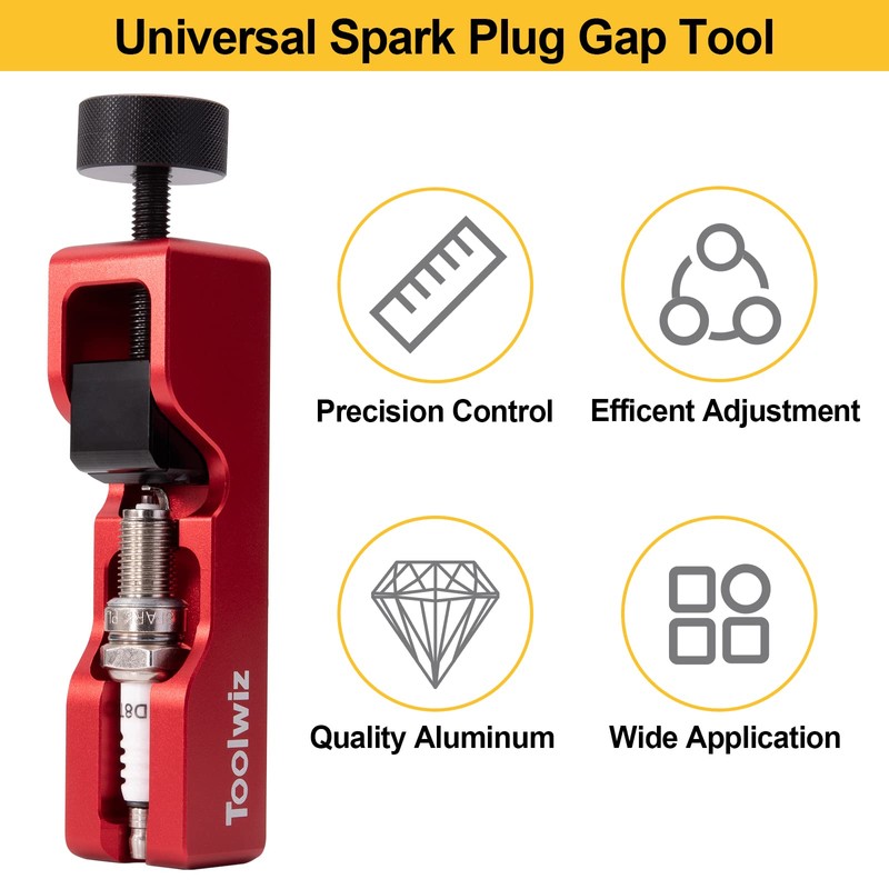 Toolwiz Spark Plug Gap Tool with 32 Blade Steel Feeler Gauge, Universal Gapping Tool for Most 10mm 12mm 14mm 16mm Thread Spark Plugs, Red