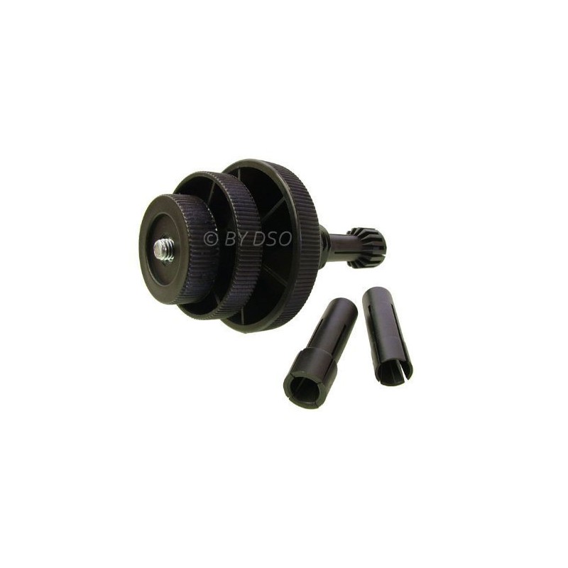 Thread the funnel wheel onto the centre body, with ribs facing the same direction as those on the fixed wheel that is the smooth side of the wheel facing away from the fixed wheel. Select the suitable collect, depending on clutch size, and slide onto the centre shaft. Insert centre shaft and collect through centre body and thread small wheel onto the end of the shaft.