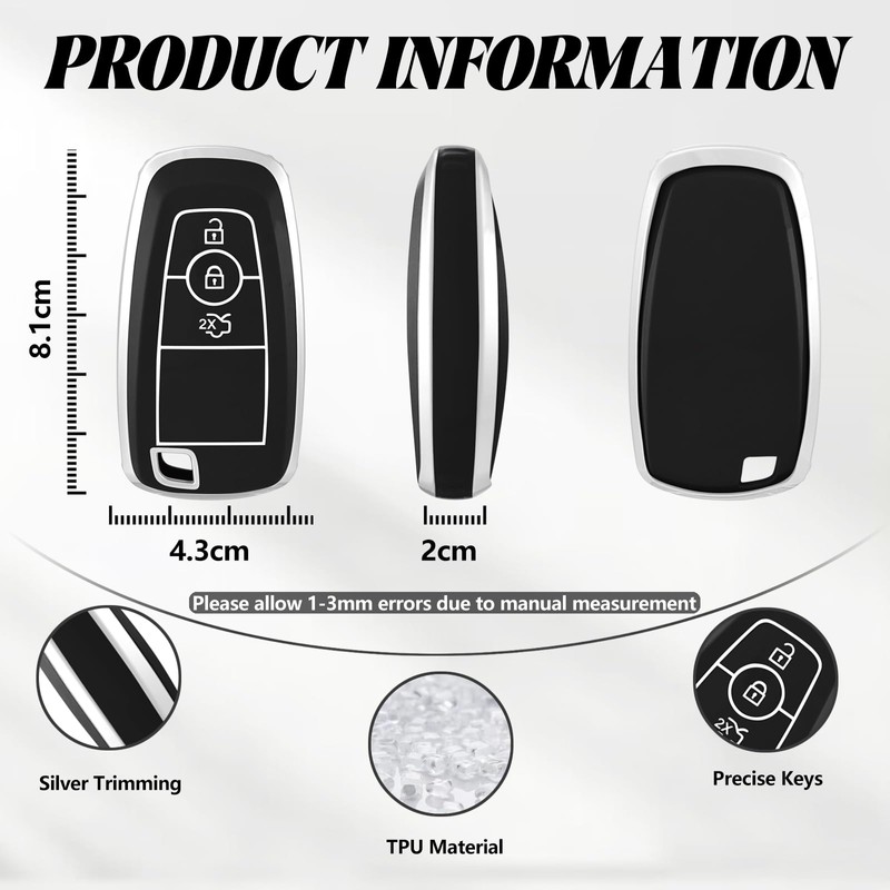 • 【Note】⚠️The car key case does not include the car key. ⚠️This product is a TPU key fob cover, not a plastic replacement key shell. ⚠️No interior (remote/electronics/transponder chips/batteries) unit inside the key fob case. ⚠️Even if the type is the same, car key may be different depending on the manufacturing year.