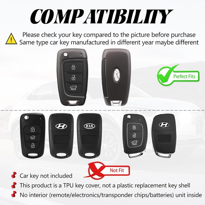 - Compatibility: Please note the 3rd Picture! If you have any questions, please send us a picture of your car key. Key case is compatible with Hyundai i10 i20 i30 i35 i40 ix20 ix35 i30n Kona Tucson NX4 Elantra GT Accent Solaris Celesta Sonata Creta Azera Verna Venue Santa Fe Genesis.