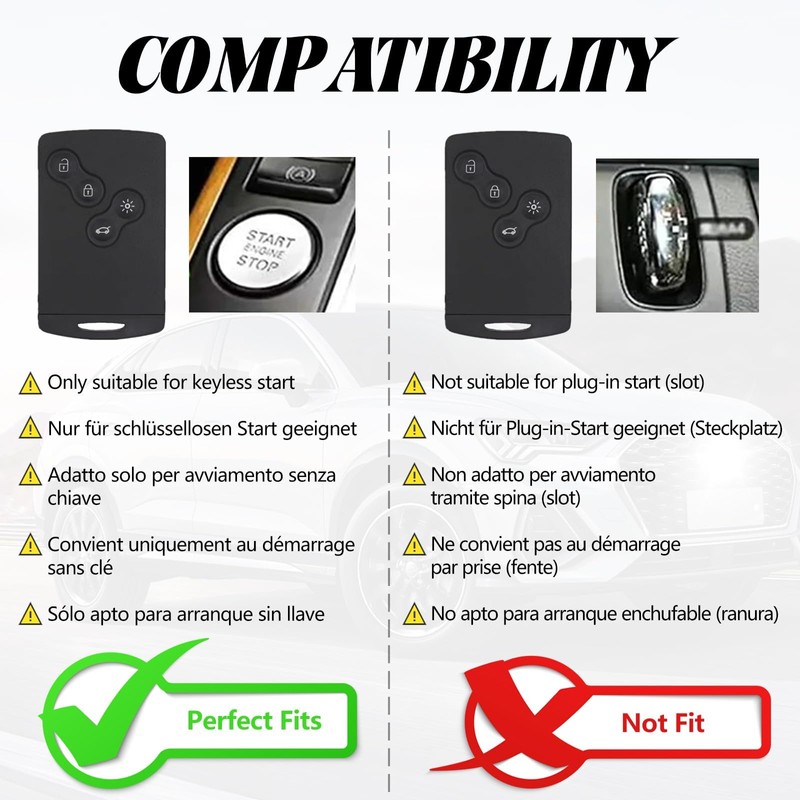 - Compatibility: Please check the third picture before purchasing. If you have any questions, please send us a picture of your car key. Key case card is compatible with Renault Scenic, Grand Scenic, Clio 4/5, Laguna 3, Megane 1/2/3, Zoe ZE/R110/R135, Captur, Duster, Espace, Fluence, Koleos, Kadjar, Kangoo, Latitude, Logan, Master, Sandero, Stepway, Arkana, Twingo, Danilo, Nema, Trafic, Stage, Stage, Stage,