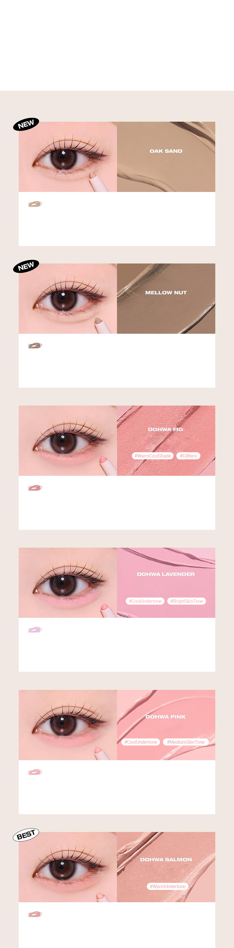 No smudging against moisture and oil - Point 4. Artistic contouring shades Optimal artistic shades for Asian’s eyes