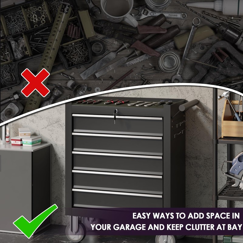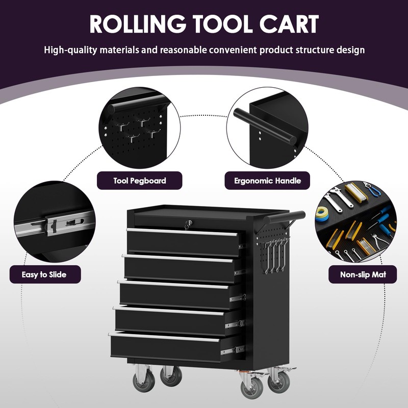 Tooremine 5 Drawer Rolling Tool Chest, Metal Tool Cart on Wheels,Tool Cabinet Locking Key & Drawer System Storage,Tool Box Organizer for Garage,Warehouse