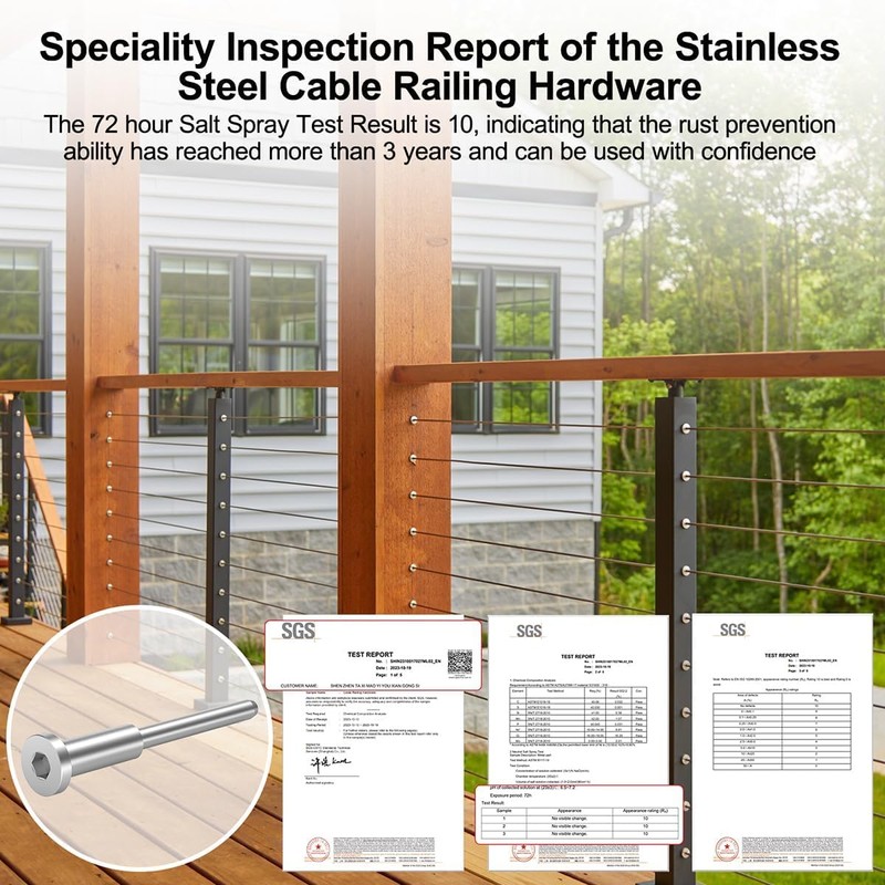 - Upgrade Your Cable Railing System: Our Invisible Cable Railing Kit is fabricated from high-strength marine-grade T316 stainless steel material, which is anti-rust, waterproof, and highly corrosion-resistant. It is ideal for both indoor and outdoor installations and is perfectly suitable for DIY stairs, porch, terrace railing, and deck railings