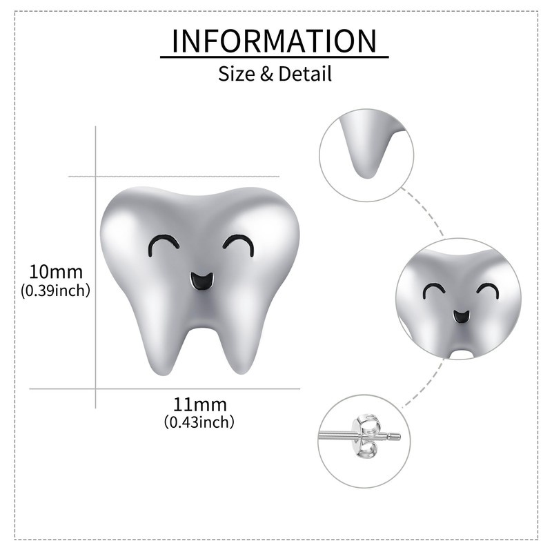 - 💕Specification: 11 mm x 10 mm (W x H). What you get: 1 x tooth stud earrings, 1 x polishing cloth and 1 x exquisite gift box.