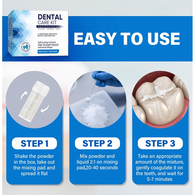 - 【Professional Tooth Filling Kit】Our tooth filling repair kit with 20 gm Powder + 10 ml Liquid + 30Pcs Mixing pad + Measuring Spoon which are designed specifically for normal tooth filling needs, they are highly effective in helping to repair dental problems