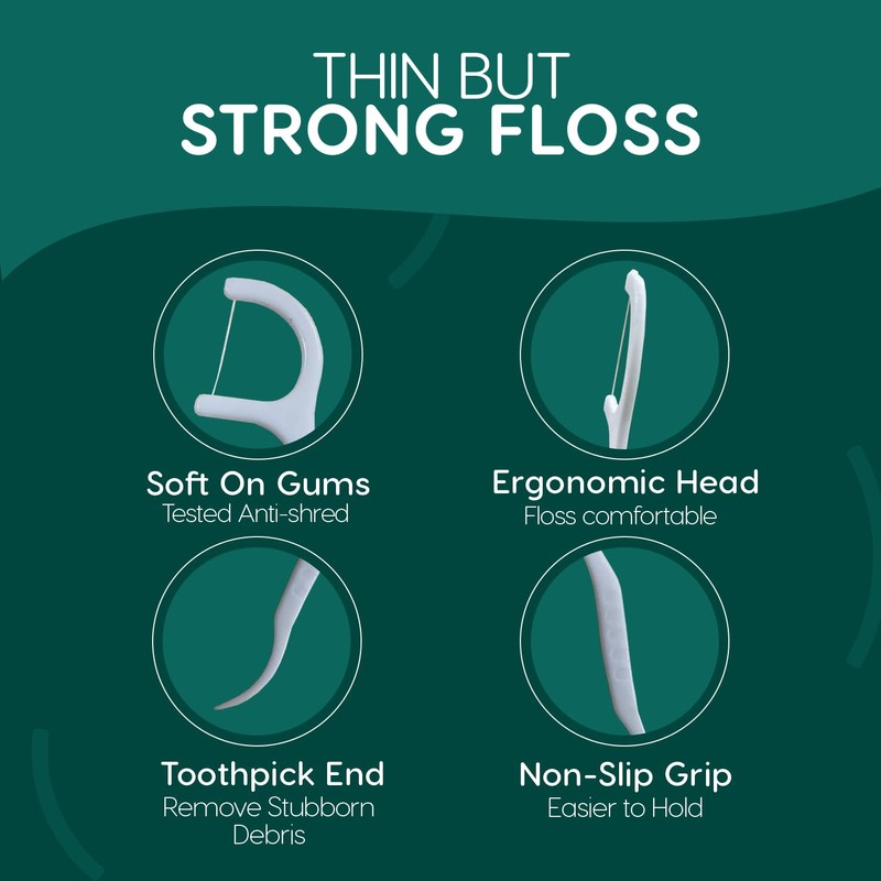 - 【Super Strong Floss】Engineered not to stretch, shred or break. The floss itself is thin yet strong, making it easy to get between teeth and remove any trapped food particles. Love these for flossing!
