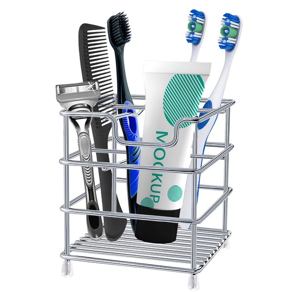 Toothbrush Holder Stainless Steel Rustproof Bathroom Electric Toothbrush Holder Toothpaste Storage Organizer Stand for Vanity Countertops