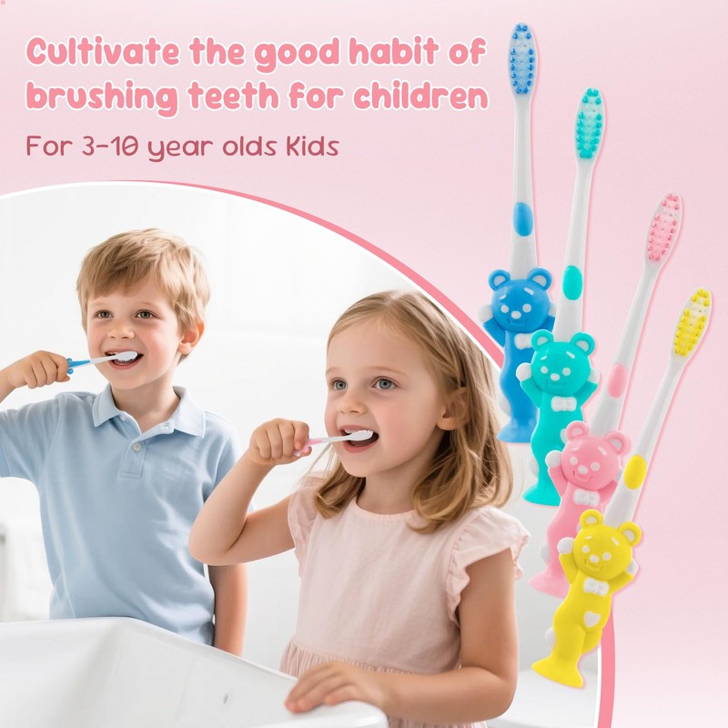 - Cute Bear Design: Featuring a cute bear design, the Individually Wrapped toothbrush is equipped with good silicone soft-grip handle. The rounded, non-slip design fits perfectly in children's small hands, making brushing enjoyable for babies while maintaining oral health.