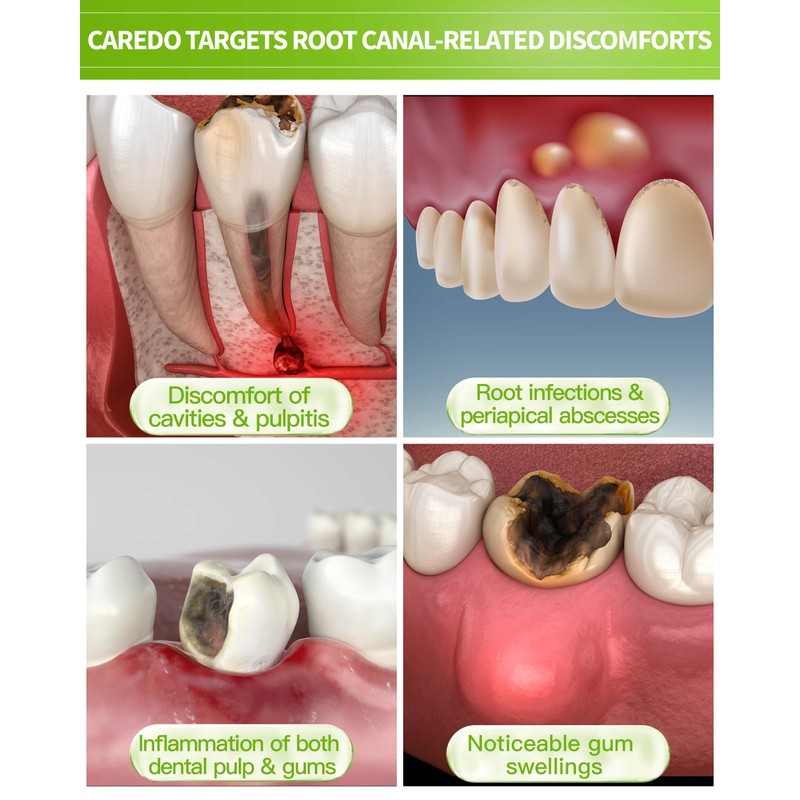 - 1. Root Canal Therapy Alternative: CAREDO enhances the formation of dentin-like crystals within root canals, offering strong antimicrobial properties. This supports healthy tooth root growth and creates protective barriers, speeding up recovery from root infections. A great choice for individuals looking for root canal auto-therapy, avoid invasion treatment.