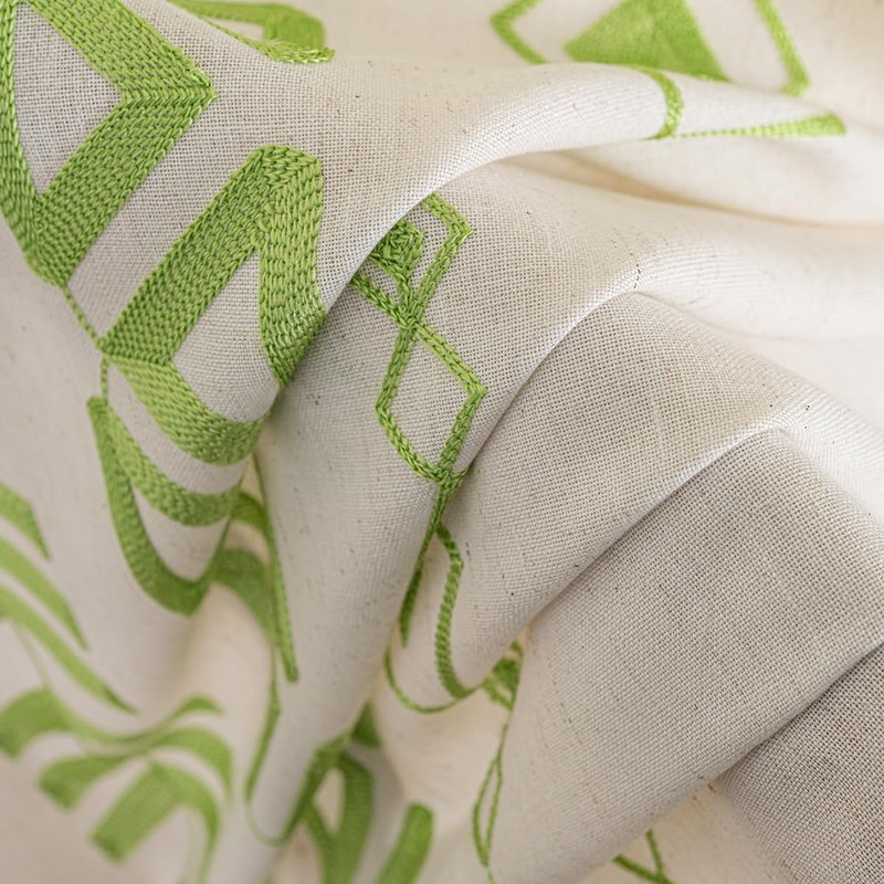 Tootop Boho Linen Embroidered Curtains - Bohemian Geometric Beige Farmhouse Living Room Decor - Rustic Translucent Grommet 2 Panel 84 Inch Green