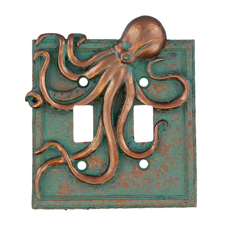 Top Brass Large Octopus/Kraken Electrical Cover Wall Plate Bronze/Verdigris Finish - Single Switch, Double, Rocker, Outlet (Double Switch)