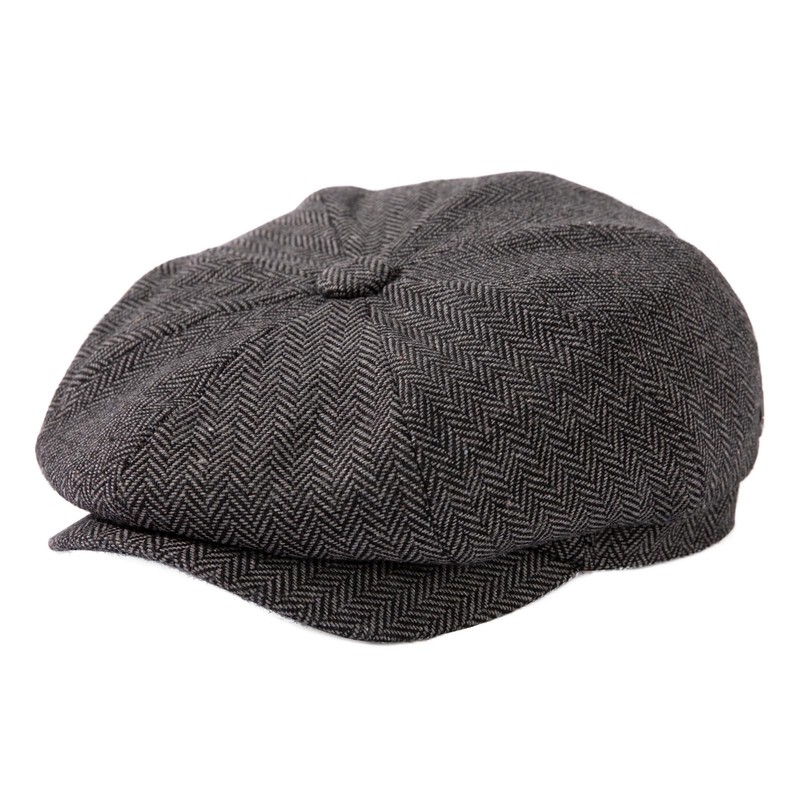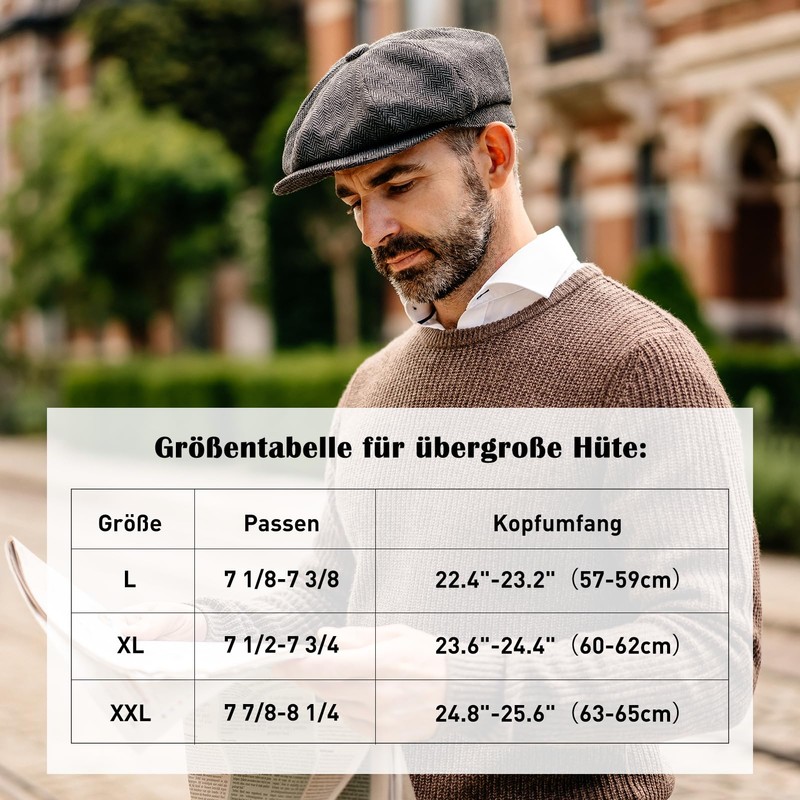 TOP-EX L/XL/XXL Merino Wool Flat Hat Men's 8 Panel Peaky Herringbone Tweed Retro Flat Cap Bat Cap Gatsby Cap, 95574_Grey Herringbone