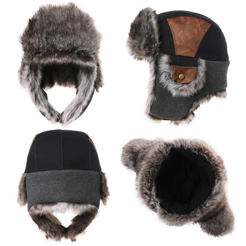 TOP-EX Pilot Cap, Men's Cap, Cold Protection, Flying Hat, Large Size, Fluffy, Earmuff, Foldable, Snowboarding, Snow Play, Bicycle, Outdoor, Skiing, Winter, TE67191-Black (Fake Fur)