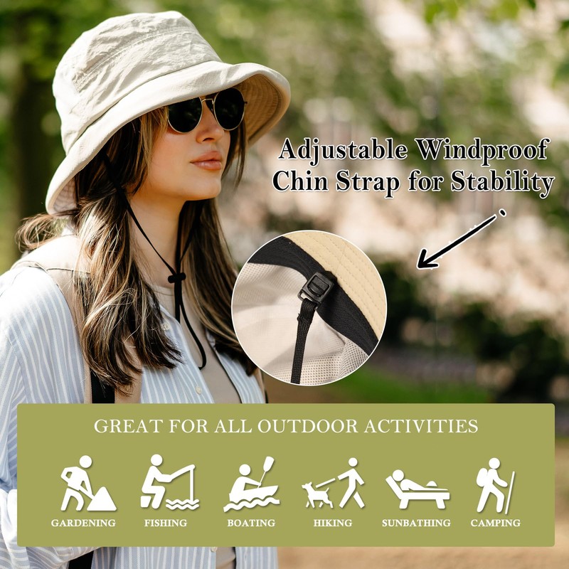 - 【Adjustable Windproof Chin Strap for Stability】- Designed with a detachable and adjustable windproof chin strap, our hat stays securely in place during windy conditions, providing stability and peace of mind while you enjoy outdoor adventures like fishing, safari, or camping.