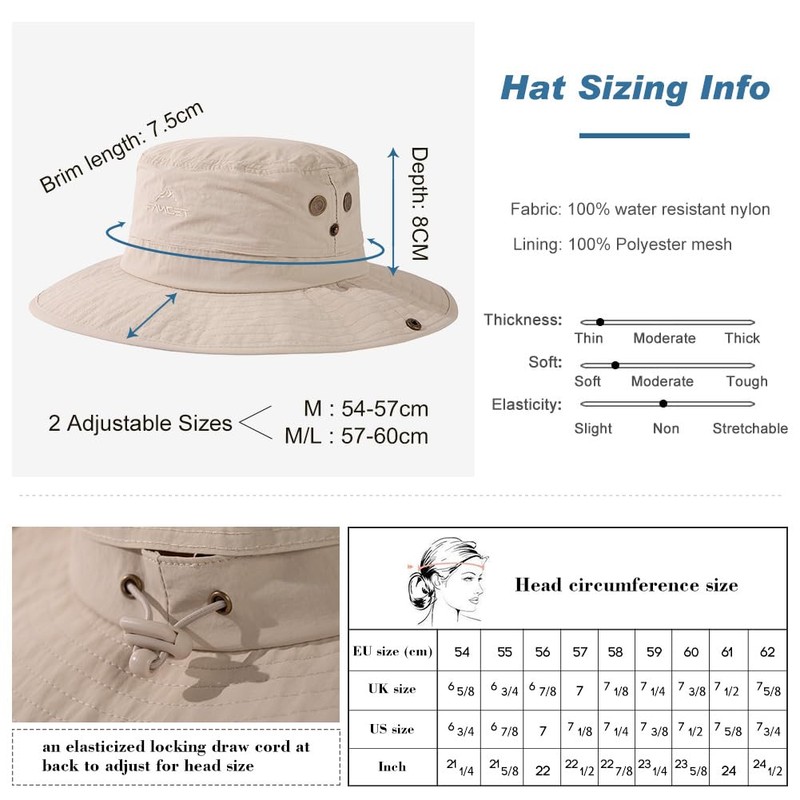 - 【Hidden Ponytail-Friendly Design & Size Adjustable】- Specifically tailored with an opening for a ponytail, providing comfort and convenience for women with long hair during outdoor activities like hiking, fishing, gardening, and trekking. M: best fits 54-57cm; M/L: best fits 58-60cm; L/XL: best fits 61-63cm; With an adjustable elasticised toggle at back and chin strap can help you find a perfect fit.