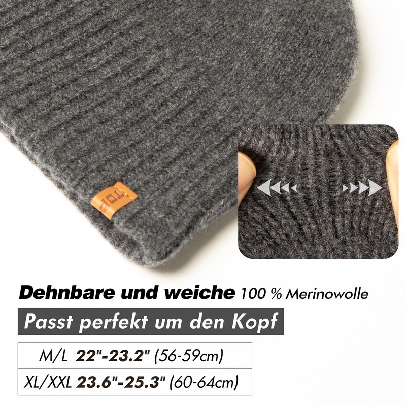 TOP-EX XL/XXL 100% Merino Wool Beanie Hat, Winter Hat, Wool Hat, Men Women, Knitted Hat, Fisherman Beanie, Trawler Hat, Warm Fleece Lining, TX94594_Grey