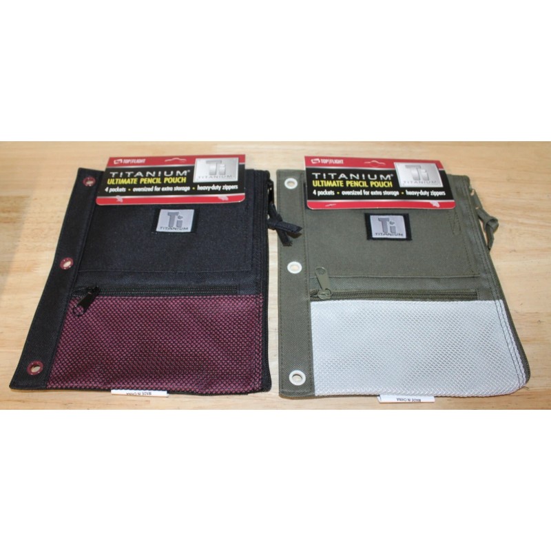 Top Flight 2 PACK Top Flight Titanium Ultimate Pencil Pouch, 4 Pockets, Heavy-duty Zippers