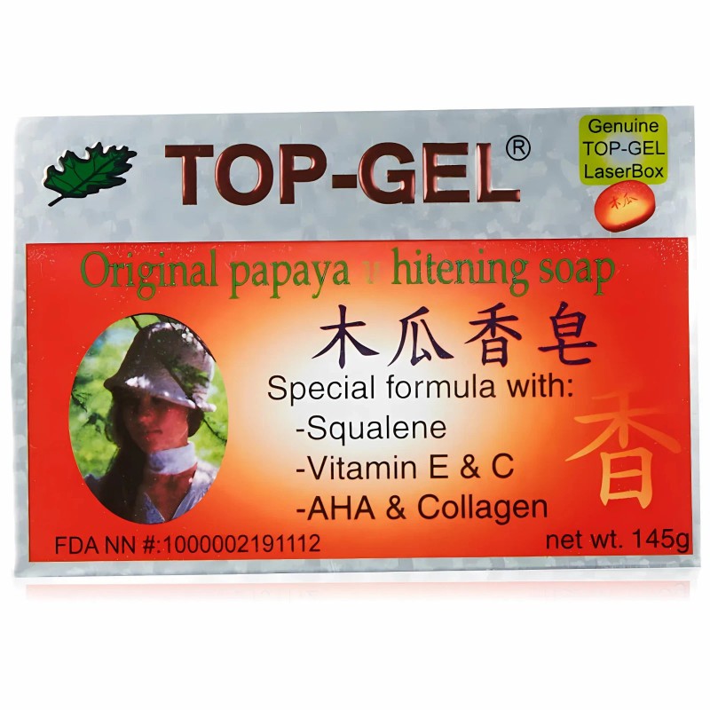 Discover the rejuvenating power of nature with our Top Gel Papaya Lightening Soap, a premium skincare solution designed to enhance your natural glow. Enriched with the goodness of papaya extracts, this soap is formulated to gently cleanse and brighten your skin, leaving it smooth, soft, and radiant. Ideal for all skin types, it works effectively to reduce the appearance of dark spots, blemishes, and uneven skin tone, revealing a clearer and more luminous complexion. Embrace the confidence of healthy skin with every wash.