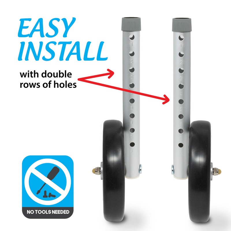 - EASY INSTALLATION: Aluminum legs with double rows of holes make installation a breeze, and with height-adjustability without tools, you'll have your walker ready to go in no time.