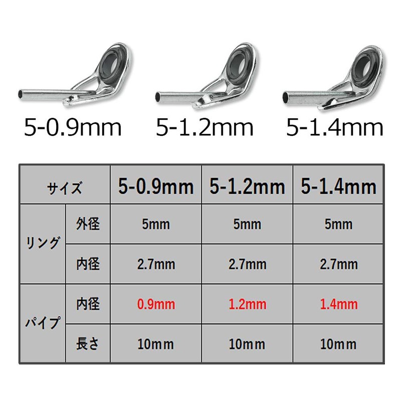 Top Guide, Rod Guide, Stainless Steel, Fishing Rod Tip (0.02 - 0.03 inches (5 - 0.9 mm), 0.2 - 0.05 inches (5 - 1.2 mm), 0.2 - 0.06 inches (5 - 1.4 mm),