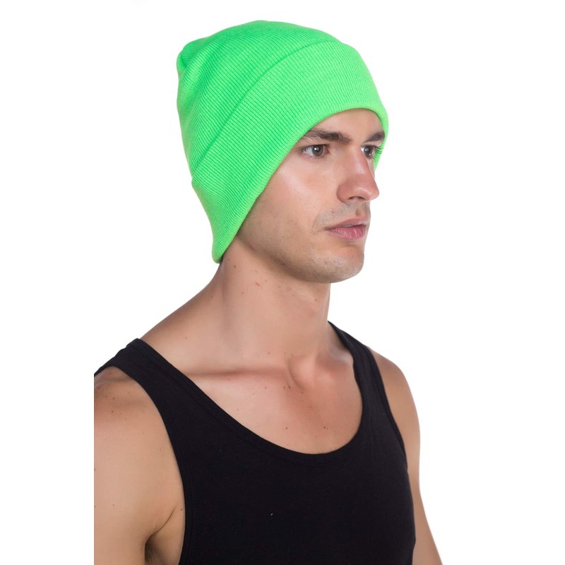 Top Level Beanie Men Women - Unisex Cuffed Plain Skull Knit Hat Cap, Neon Green
