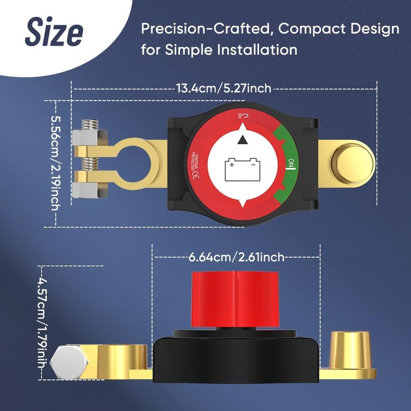 - 【Streamlined Installation】Engineered for plug-and-play functionality, it mounts directly to top-post battery negative terminals without auxiliary wiring or adapters, ensuring instant and secure electrical disconnection.
