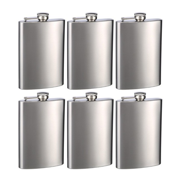 Top Shelf Flasks Stainless Steel Hip Flasks, 8 oz, Set of 6