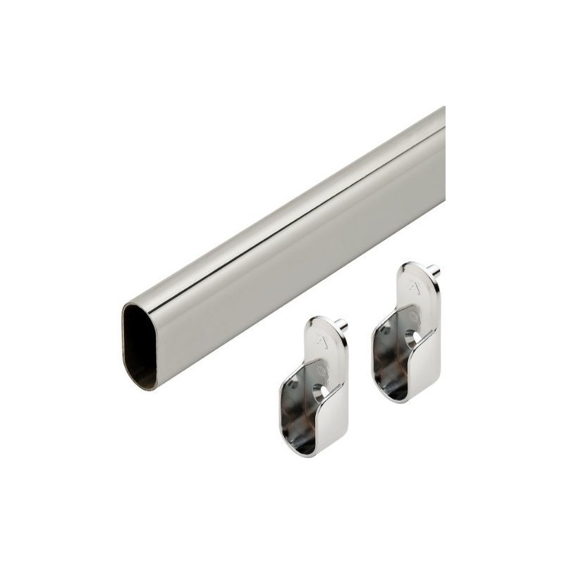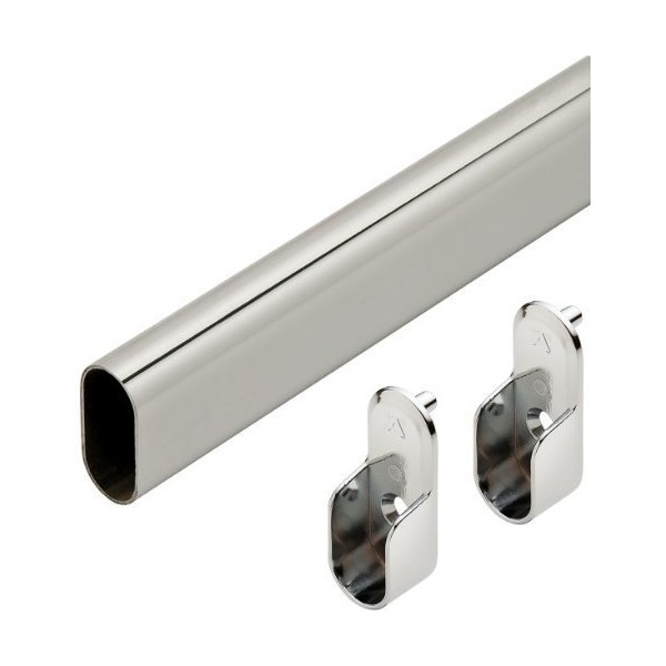 Top Shelf Hardware Chrome Oval Closet Rod with End Supports (Chrome, 48" Wide Space)