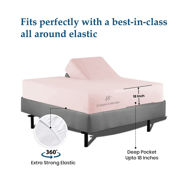 Top Split California King Sheets Sets for Adjustable beds, Half Split Cal King Sheet Sets for Adjustable beds 18" deep Pocket, 34" Split Top Sheets 1000 TC 100% Cotton (Half Split Fitted) Blush