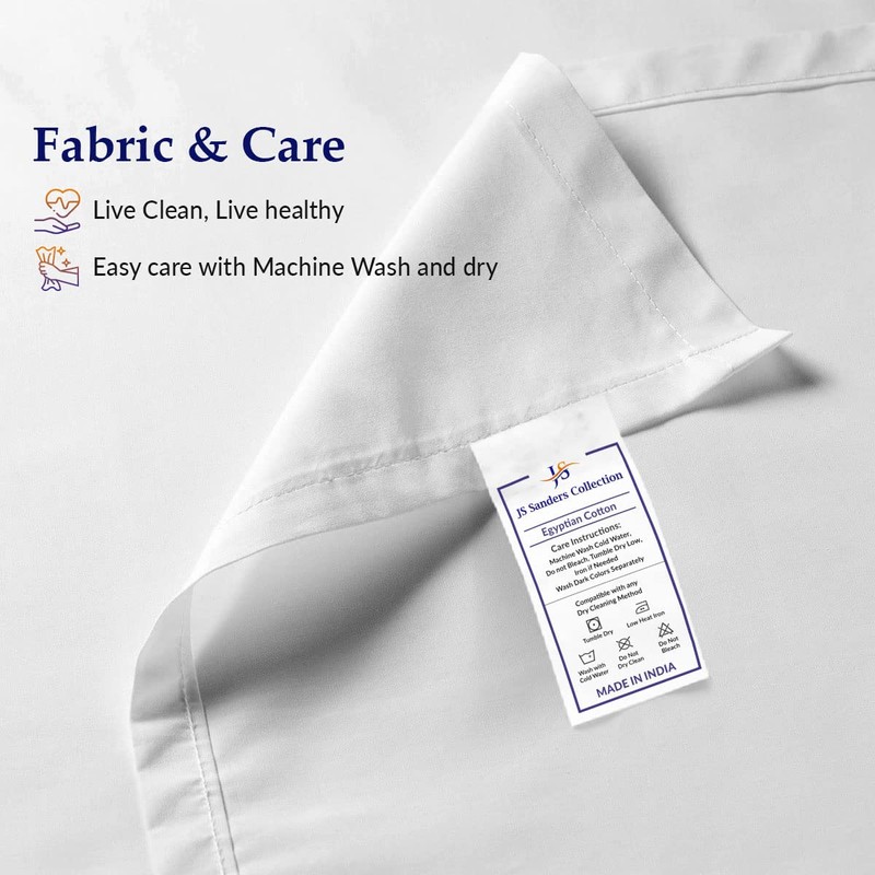 Machine Washable with Cold Water, Delicate cycle with mild detergent. No bleach, Dry this sheet set with Low Setting. To avoid wrinkles we highly recommend putting your Egyptian Cotton sheets on your bed right after pulling them out from your dryer.