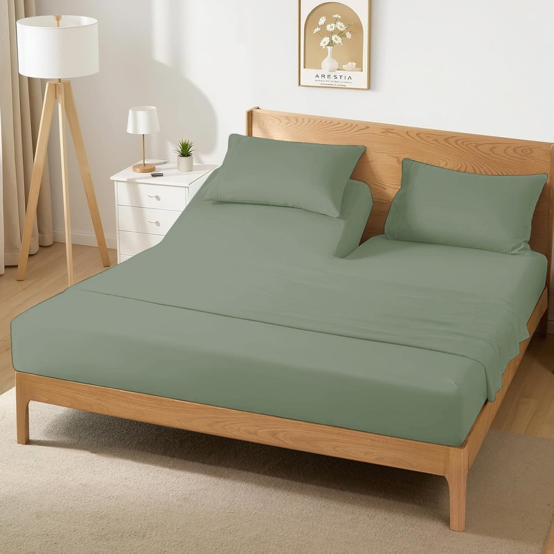 Split Head King Sheet Set 4 Piece for Adjustable Beds Fits Mattress up to 18" Deep Split Top King 100% Egyptian Cotton 800 Thread Count with 34" Split Sheets - Sage Solid