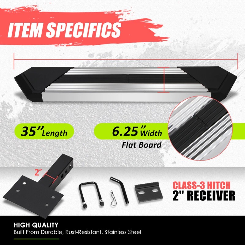 Hitch Steps are a great addition to any truck, suv, or van. These hitch steps provide easy access to a truck bed, SUV trunk space and/or roof rack and they offer protection to vulnerable, molded bumpers in the event of a collision.