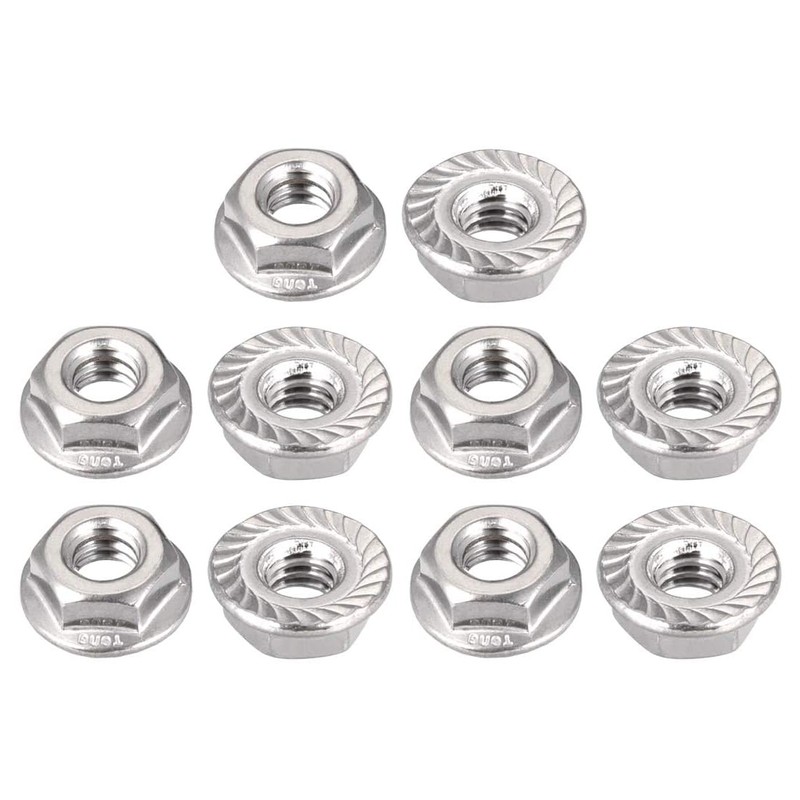 TOP-VIGOR 1/4-20" Serrated Flange Hex Lock Nuts, 10Pcs 304 Stainless Steel Fu...
