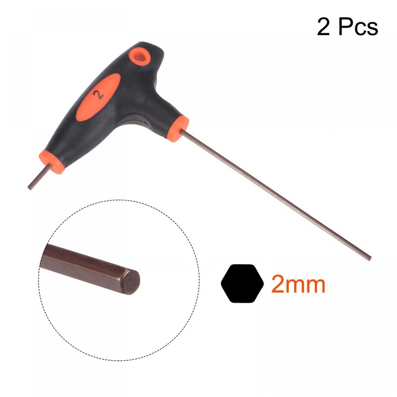 TOP-VIGOR 2Pcs 2mm Hex Key T-Handle, T Bar Dual End Wrench Spanner Allen Key for Home Repair and Mechanical Maintenance, Metric S2 Steel