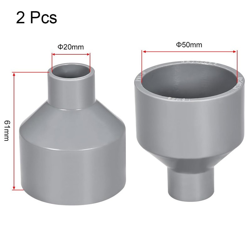TOP-VIGOR 2Pcs PVC DWV Reducing Coupling, 20mm x 50mm Socket Pipe Fitting Adapter Connector, Duct Reducer Pipe Fitting for Water Supplies Build, Gray