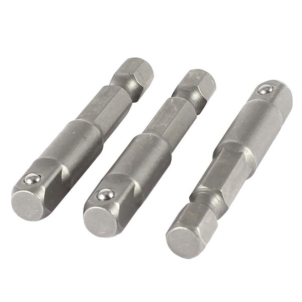- [Size & Package] Hex Socket Size : 6.3mm / 1/4";Hex Shank Size : 6.3mm/ 1/4"; Overall Size : 6.5 x 50mm/ 0.25" x 2" (D*L);Color : Gray. Package including: 3 x Socket Adapter.