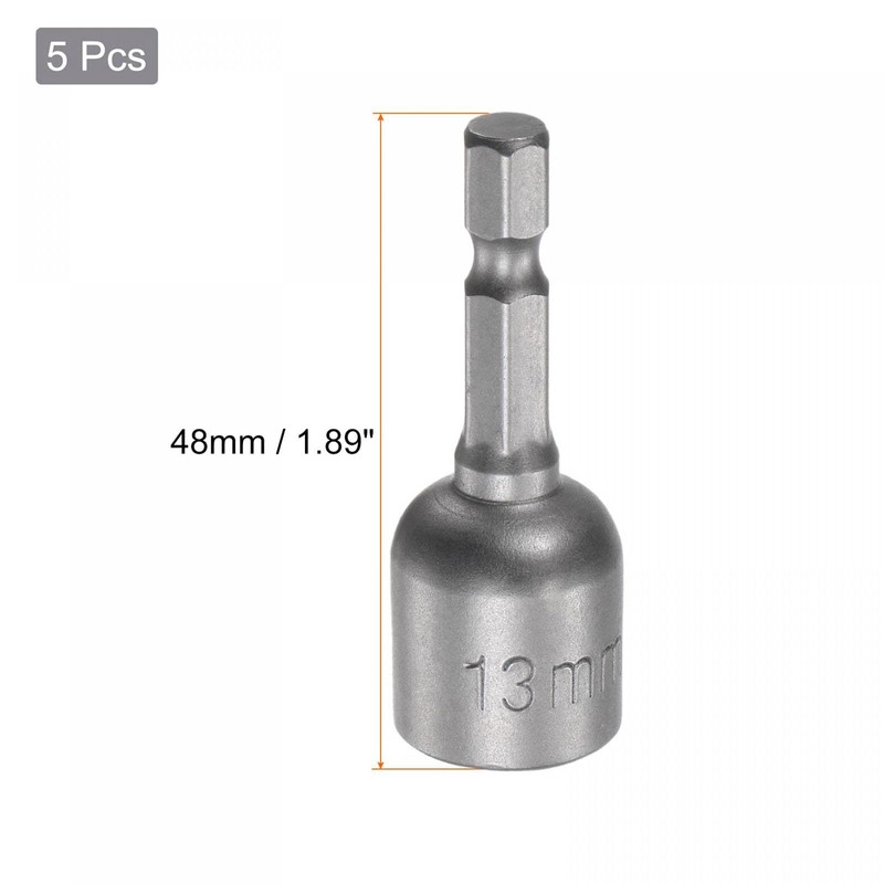 - 【Size & Package】1/4 inch Quick-Change Hex Shank, 13mm nut driver, 1.89 Inch total length. Package content: 5 x Quick-Change Hex Shank.