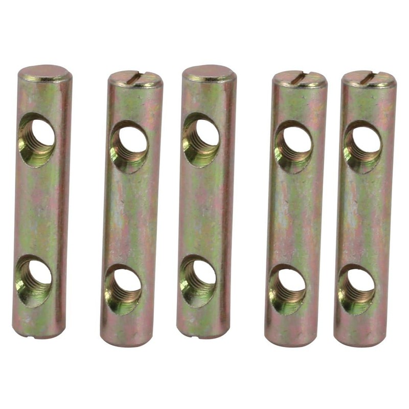 TOP-VIGOR 5Pcs M8x60mm Dual Hole Zinc Plated Iron Slotted Drive Cross Dowel Barrel Nut for Crib Bunk Bed Furniture Cot