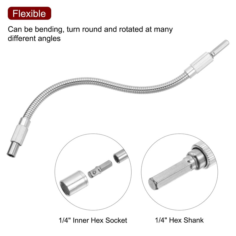 - [Features]: The bendable drill extension can twist and rotate at 360 degrees, making it ideal for working in tight spaces and awkward angles. It's flexible, easy to fold, and portable, perfectly suited for daily tasks.