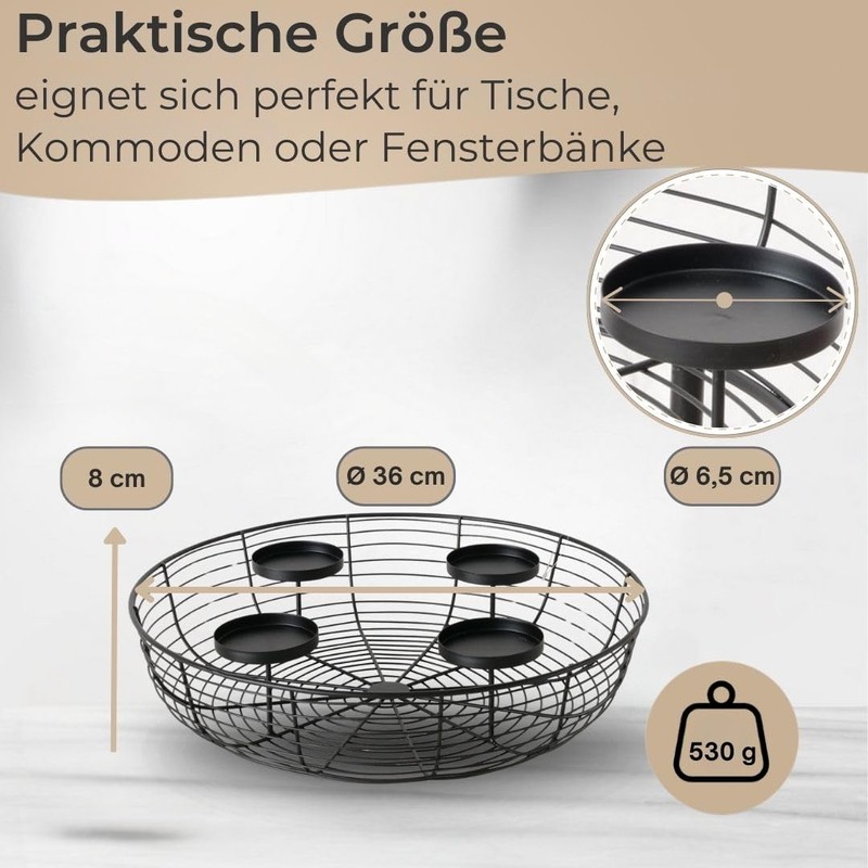 - ✔ Platz für 4 Kerzen – Geeignet für Stumpenkerzen oder LED-Kerzen, perfekt für eine stimmungsvolle Beleuchtung.