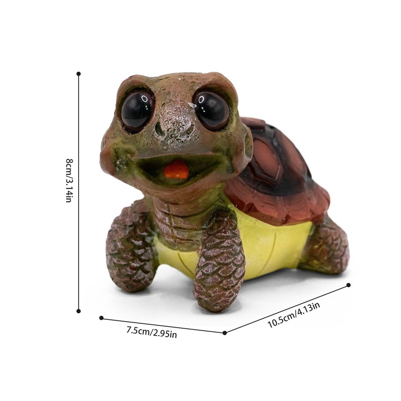 Premium Resin Material C Made from high-quality, weather-resistant resin, ensuring durability for both indoor and outdoor use. Hand-Painted Details C Expertly crafted with vibrant colors and fine details for a realistic, artistic touch. Versatile Home & Garden Decor C Ideal for desks, shelves, patios, yards, flower beds, or fairy gardens. Whether placed on your work desk for a bit of fun or nestled among garden plants for a touch of whimsy, this cute turtle statue is sure to bring smiles and spark conversations
