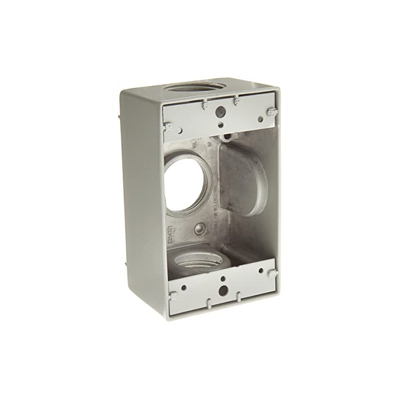 - Box includes closure plugs, grounding screws, and mounting lugs