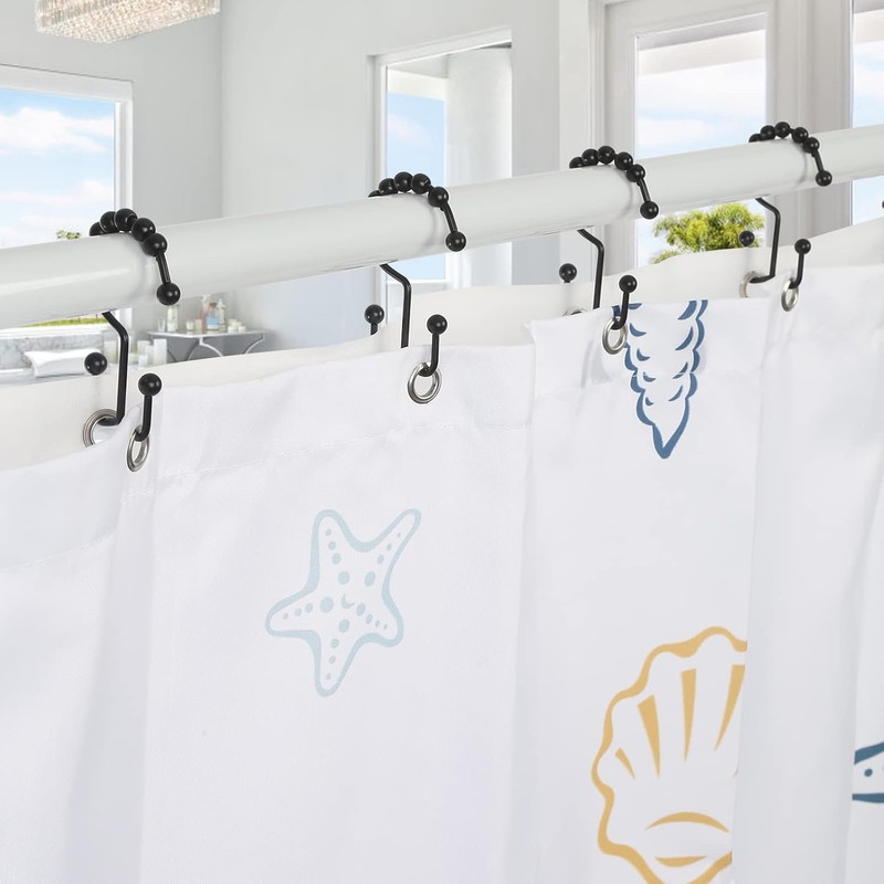 - DOUBLE HOOKS:shower curtains hooks Double hook design separates your shower curtain and liner and makes them easy to replace,The shower curtain rings are strong enough to hold a heavy curtain and liner.