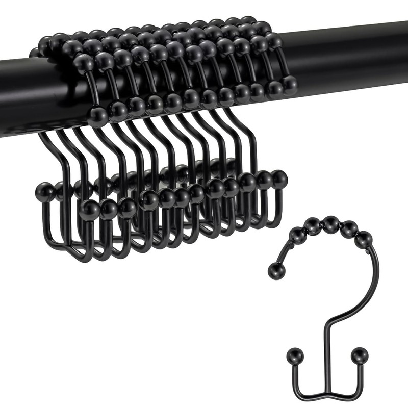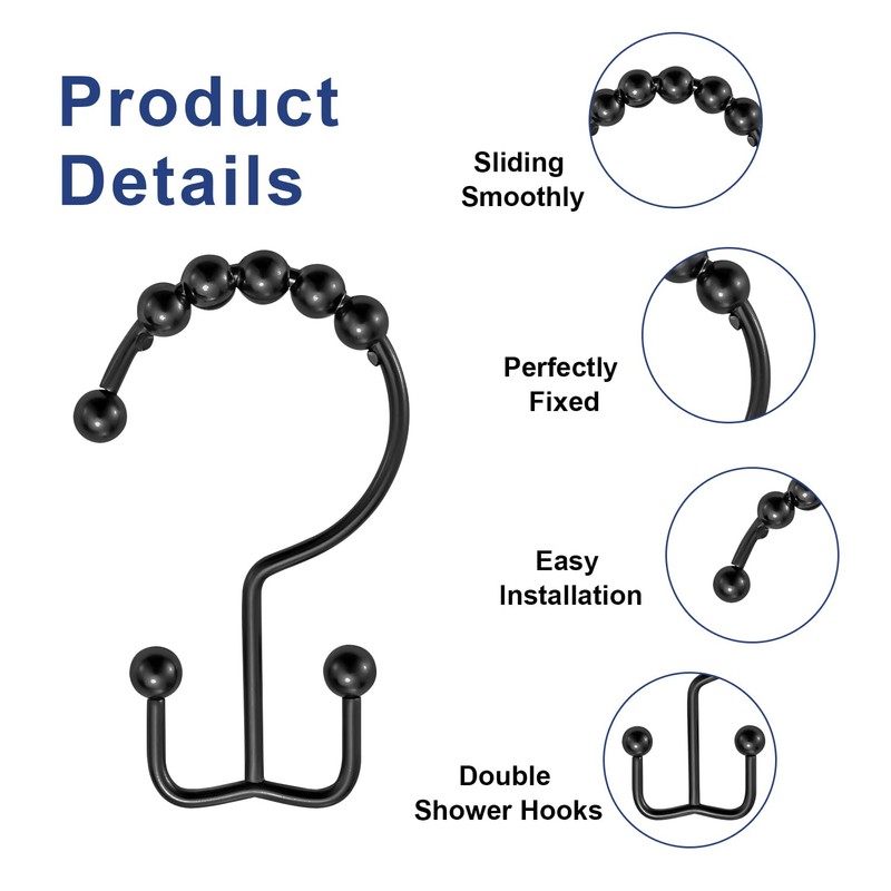 Description: The shower curtain double hooks are made of iron material, which is sturdy, durable, rust resistant, and corrosion-resistant. They can maintain good condition even in humid bathroom environments for a long time.