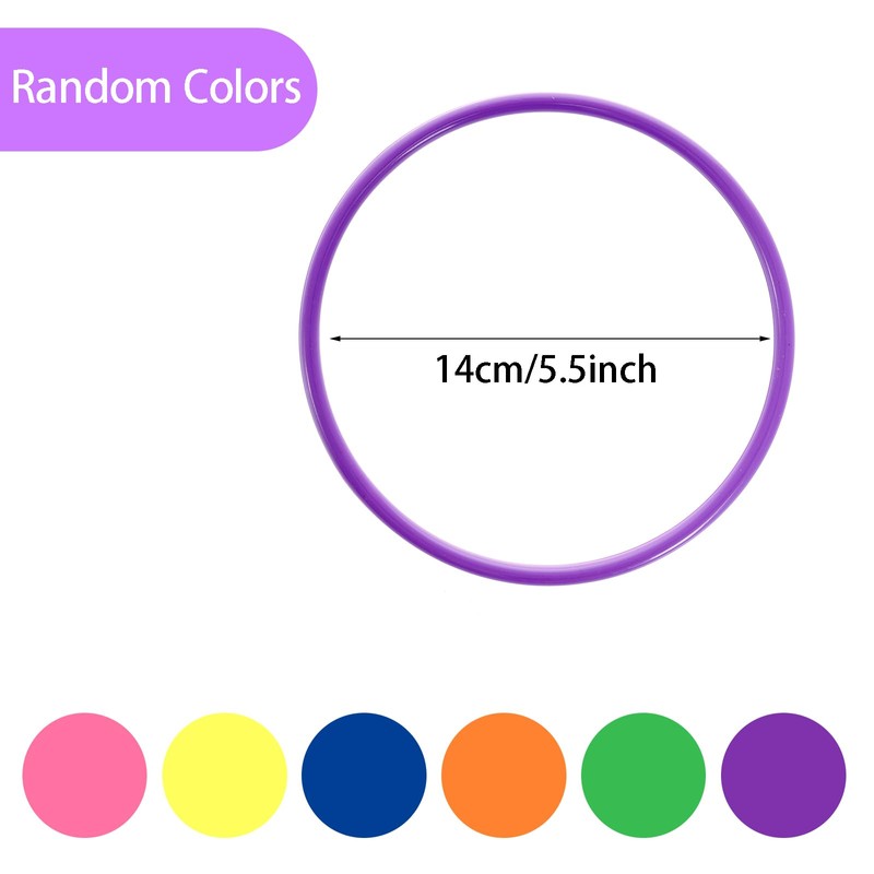 - 24 Pieces Toss Rings: Random color ring toss, pink, orange, yellow, green, blue, purple toss rings, great toy games to have fun with friends and familiers. ring toss color are random.