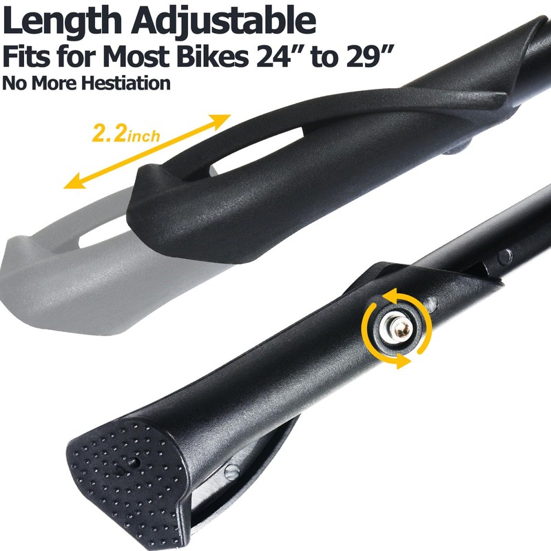 - Length Adjustment: The aluminum kickstand comes with adjustable button that can be used to loosen the middle screw so that the length can be adjusted between 24" to 29". This feature ensures the stand is the perfect height for your bike, making it more stable and secure.