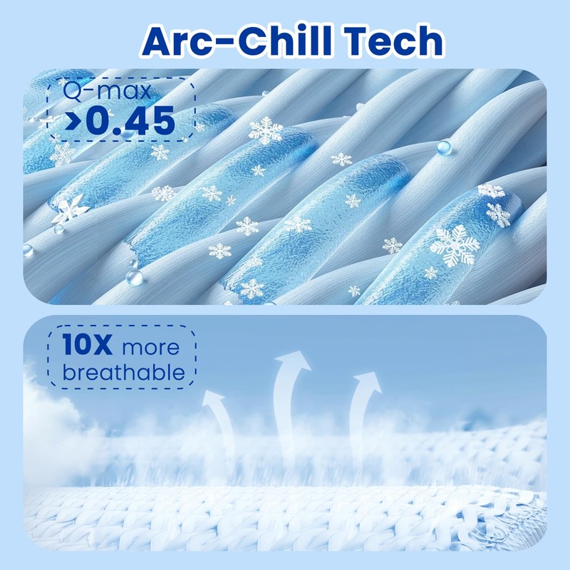 - Long-Lasting Cooling Feel: With a Cool-sense Value(Q-max) of More Than 0.5,this revolutionary Arc-chill cooling fiber has a incredible long- lasting cooling feel. The Arc-chill cooling fiber fabric can not only quickly absorb the body heat but keeping the long-last cooling feel.A cool bed blanket can be a great help for night sweats and hot sleepers -- it'll keep you cool and dry all night.